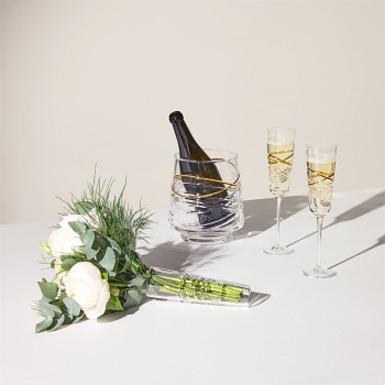 - Gilded design accents elevate this champagne cooler