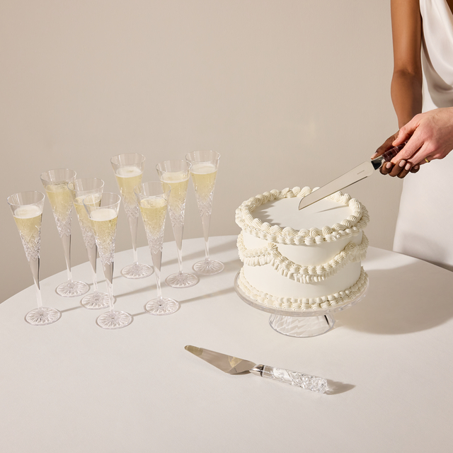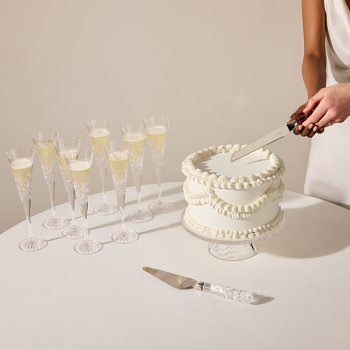 The Celebrations Cake Knife and Server Set brings timeless elegance to any special occasion. Featuring deep karo and delicate olive cuts along the crystal handles, each piece masterfully reflects light, adding brilliance to the cake-cutting ritual. Expertly crafted, this set is designed to make every slice memorable.