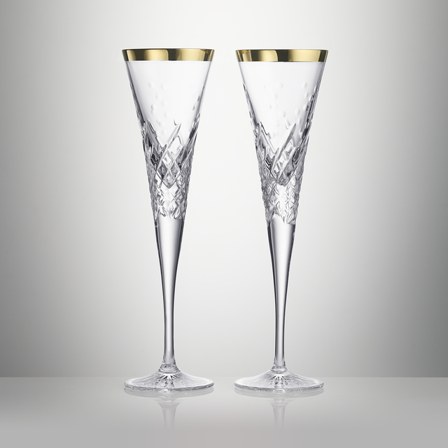 Raise a glass to life's most cherished moments. The Celebrations Gilded Toasting Flute Set features deep karo and delicate olive cuts inspired by fine champagne, finished with handgilded detailing. Made in Europe using artisanal techniques, each flute embodies refined craftsmanship. Perfect for weddings and anniversaries, this set makes an unforgettable gift.