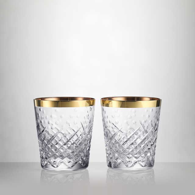 Savor every sip with the Celebrations Gilded Tumbler Set. Finished with handgilded detailing each tumbler features deep karo and olive cuts inspired by the sparkle of champagne. This set blends timeless craftsmanship with contemporary elegance, making it ideal for celebratory toasts and gatherings.