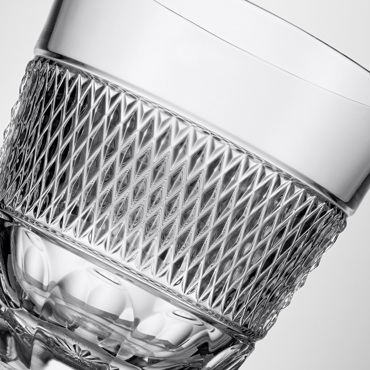 Rich in heritage and tradition, the Copper Coast Double Old Fashioned glass is a testament to the skill of our Master Craftsmen. The design, inspired by the rugged Irish coastline, features a wide central band of tight refracting caro cuts, representing the ocean, and deep cut rings symbolising the horizon. The olive cuts at the base reflect the minerals extracted from the rocks by the ancient miners.