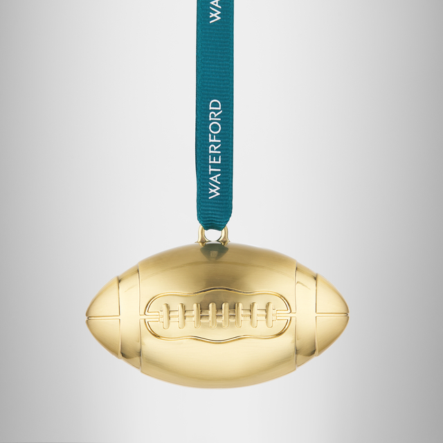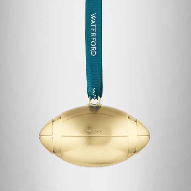 Crafted with lifelike stitching and a pleasing weighted feel, this golden Football ornament captures the heart of sportsmanship and holiday spirit. Suspended on Waterford's ribbon, it arrives luxuriously wrapped in branded tissue paper, a Waterford cloth bag, and a keepsake box—ideal for sports fans and collectors alike.