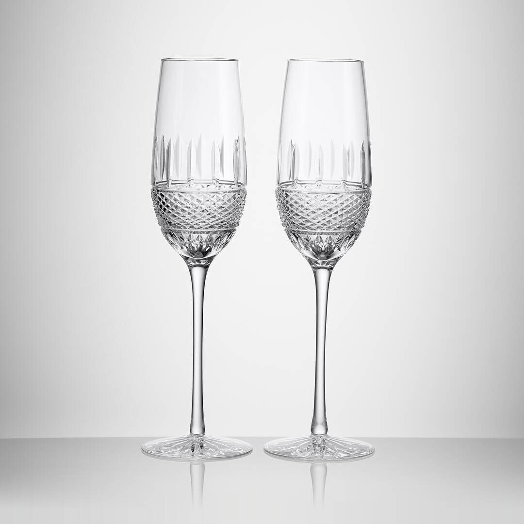 Simultaneously unique and timeless, these stunning flutes have the comforting weight you would expect from Waterford crystal. Featuring a cut pattern reminiscent of a bobbin used to sew Irish lace, this elegant crystal stemware tells a story of the ultimate craftsmanship, fine detailing and heritage, and will grace your home for generations.