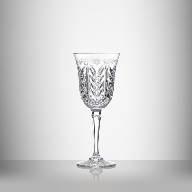 - Crystal cup adorned with a Star of David and Hebrew blessing