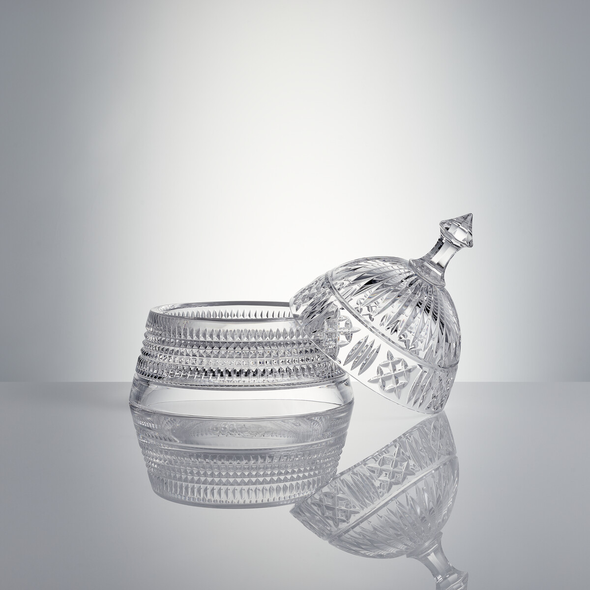 Elevate the dining experience for your faithful companions with Mastercraft Pet Bowls. Handmade in Ireland, this Large Crystal Pet Bowl is masterfully handcrafted with the distinct weight of Waterford and complete with intricate diamond and ring cuts, with space reserved for engraving your pets name around the base. A magnificent crystal cloche lid with deep, defined cuts and ornate knob handle protects the bowl's contents. The pinnacle of Waterford craftsmanship, this striking set is a strong, sophisticated vessel that will match any home decor.