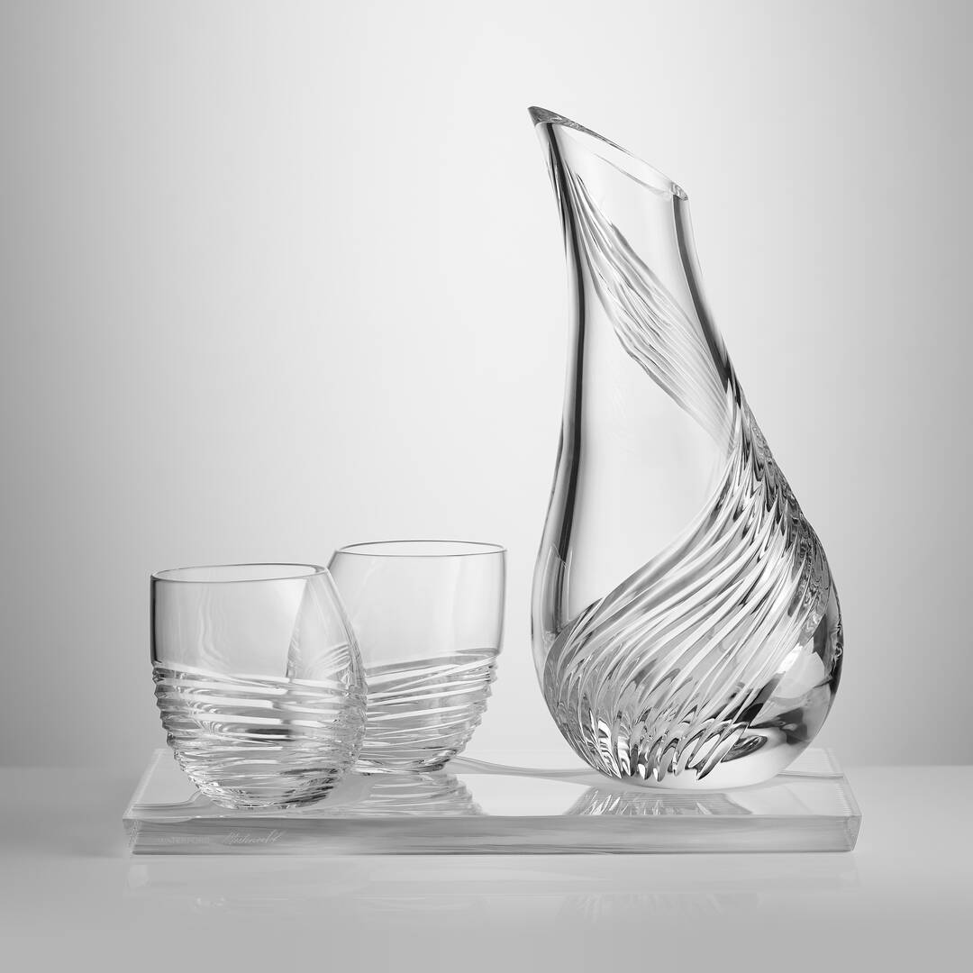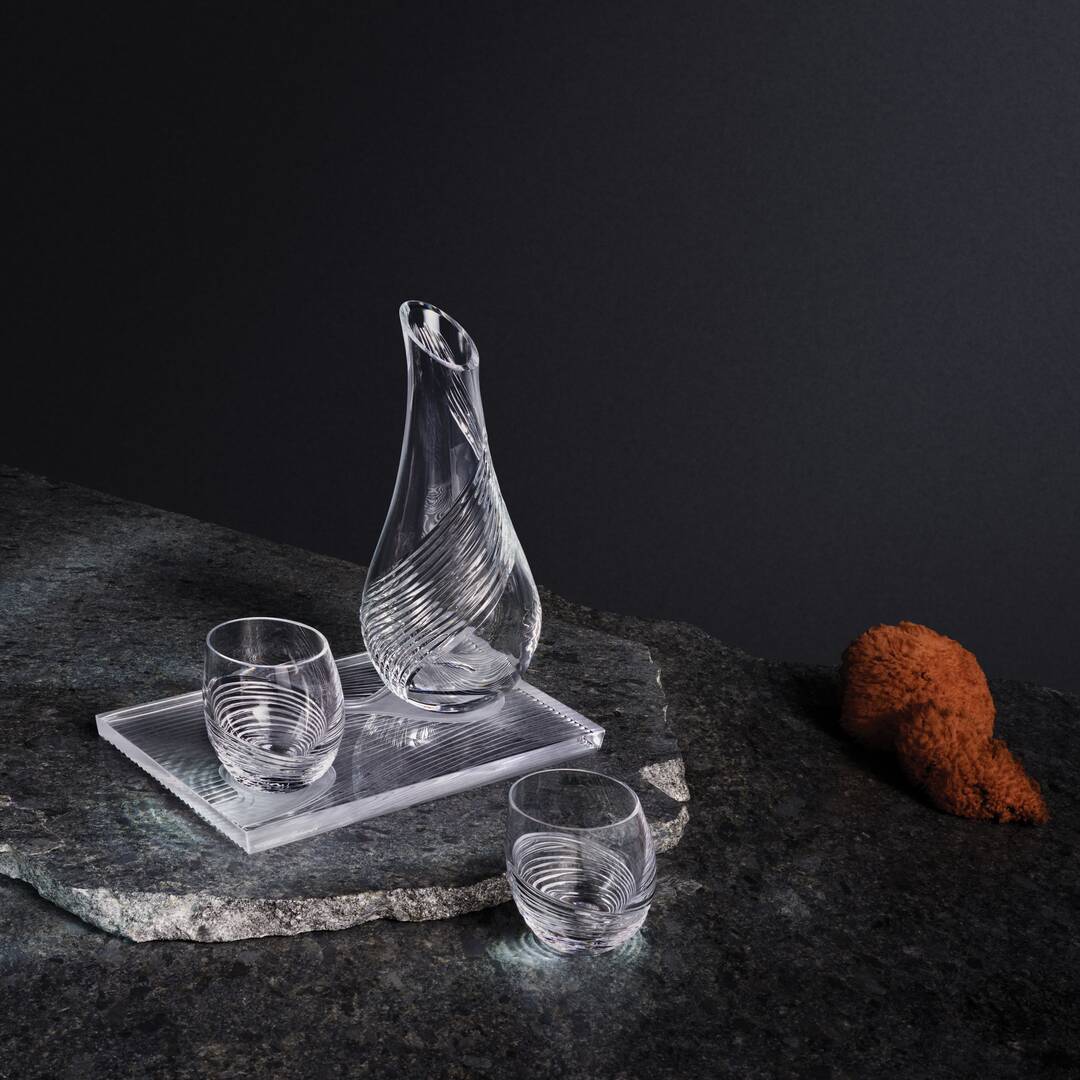 The Water Carafe and Tumbler set celebrates Earth's most precious element, inspired by the fluidity and beauty of the Atlantic ocean along the Ireland coast. Handmade at House of Waterford, the four-piece set combines the tactility of smooth shapes with deep cuts, reflecting the ebb and flow of an ocean tide.
