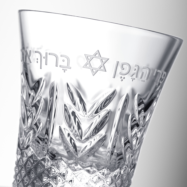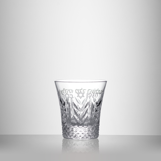 - Crystal cup adorned with a Star of David and Hebrew blessing